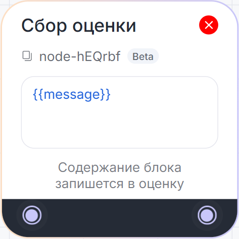 Блок «Сбор оценки» собирает оценку пользователей в диалогах и сохраняет в раздел «Метрики». Блок может понадобиться, например, чтобы оценивать работу специалистов технической поддержки. Используется в связке с блоками «Отправка сообщения» и «Ожидание сообщения».