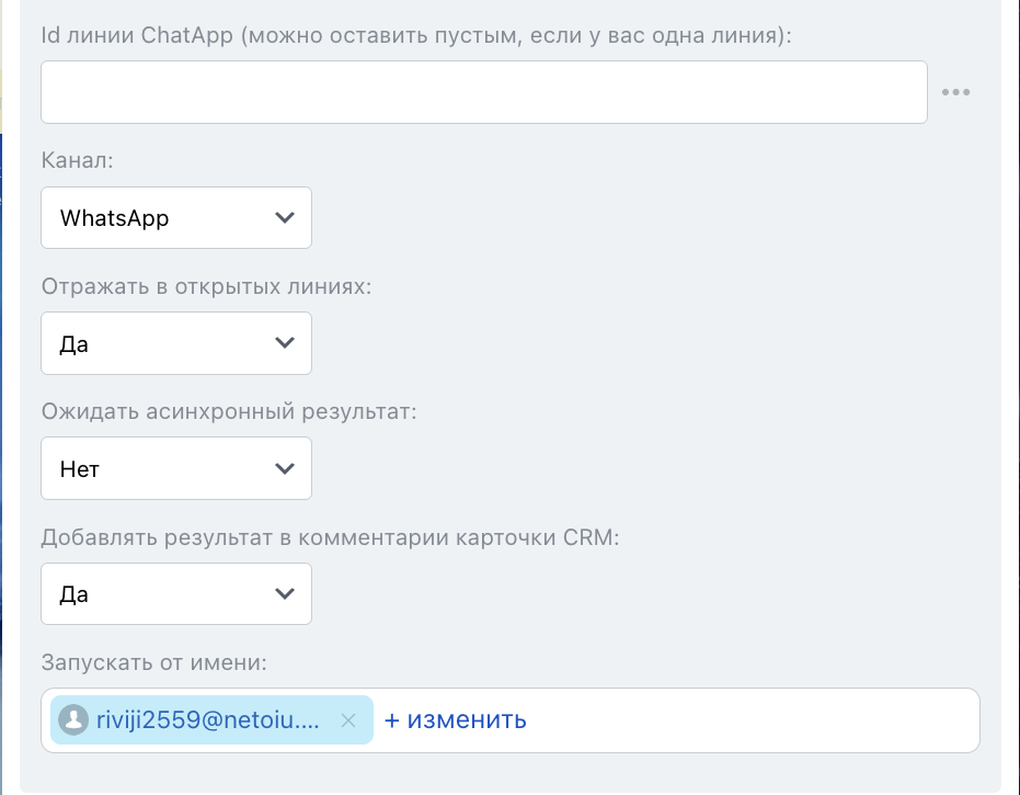 В поле «Канал» — выберите канал связи из линии, которую вы указали в поле «ID линии».