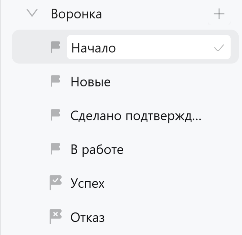 a). Переименовать стадию — для сохранения изменений нажмите иконку справа или клавишу Enter.