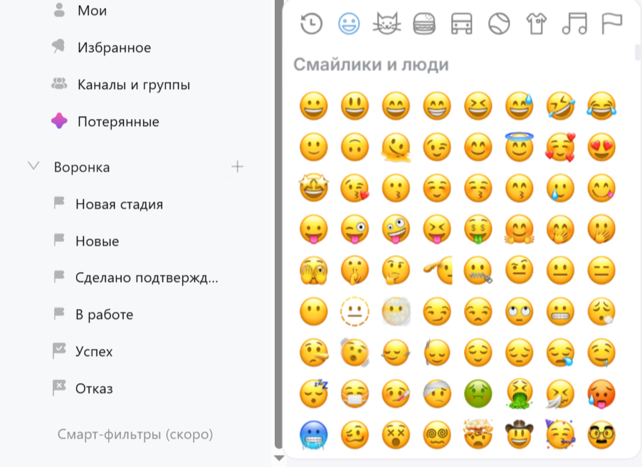 b). Изменить иконку — выберите иконку из панели смайликов.