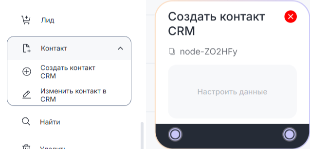 Важно: блок «Создать контакт CRM» только создает элемент, он не может проверить наличие такого контакта в CRM. |