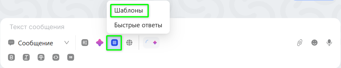 В поле ввода сообщения нажмите на иконку шаблонов.