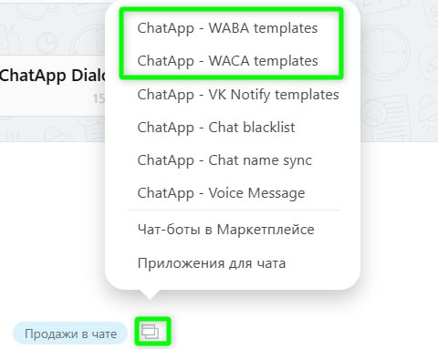 Выберите ChatApp — WABA templates или ChatApp — WACA templates (в зависимости от подключённого канала).