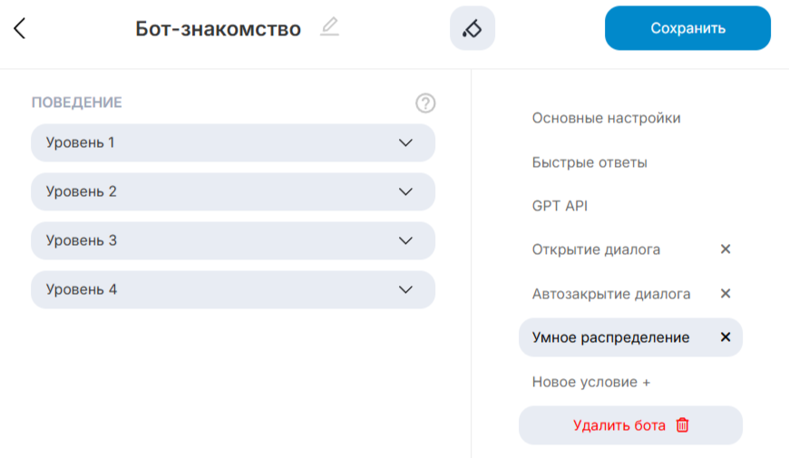 Шаг 4. Назначьте сотрудников, между которыми будут распределяться диалоги, и настройте параметры распределения: