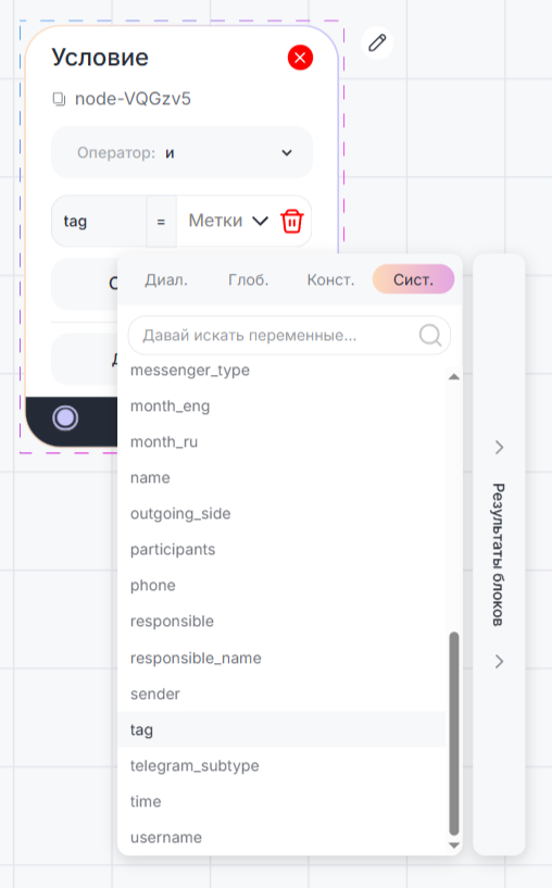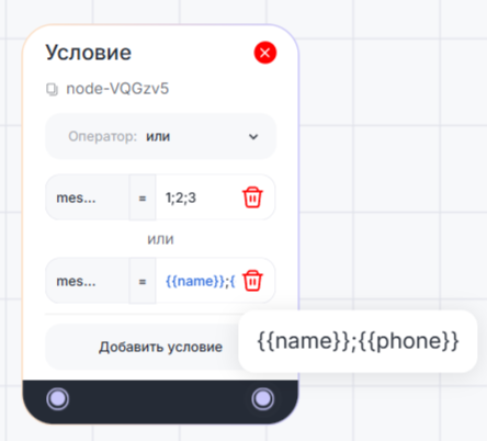 Блок «Условие» используется для создания различных веток сценария в зависимости от заданных параметров.