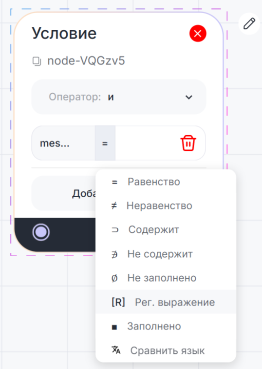 2. Выберите оператор и тип условия.