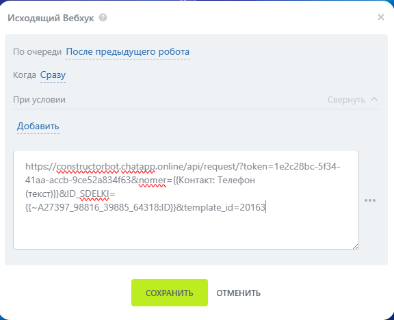5. Настройка робота «Исходящий вебхук»