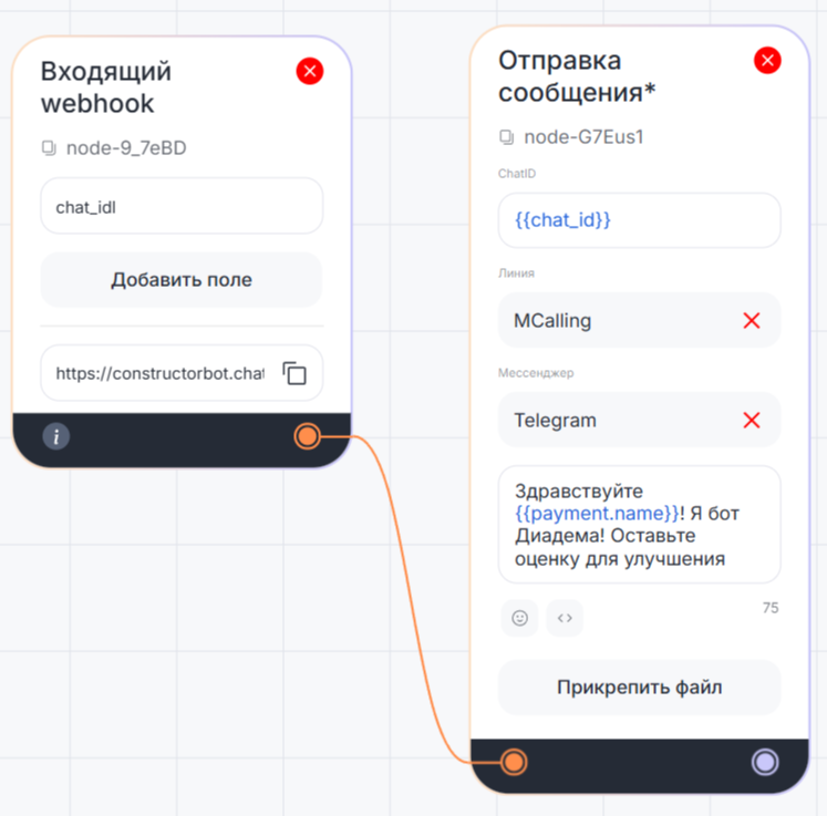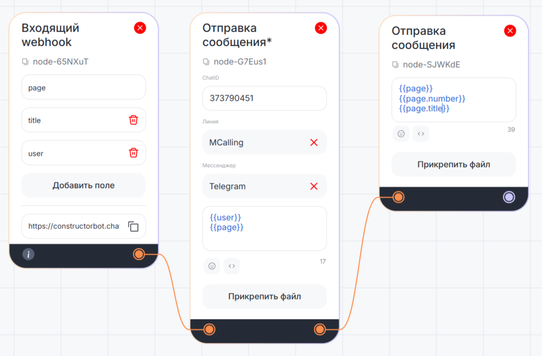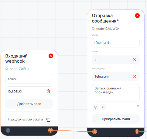 в поле «ChatID» — переменную {{nomer}};