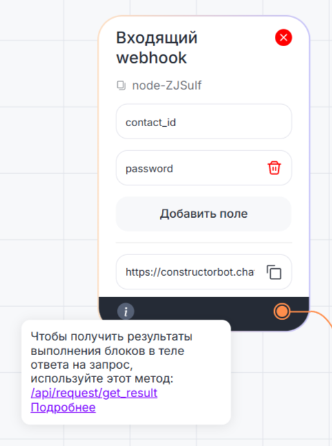 В блоке «Входящий webhook» создайте два поля: