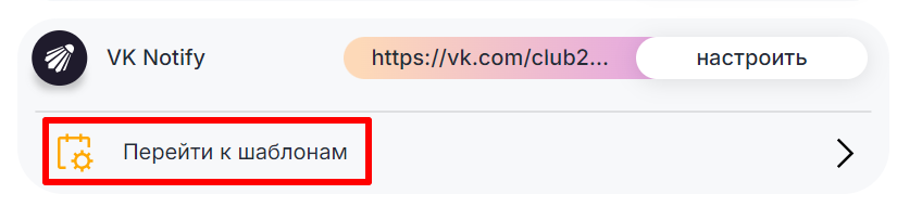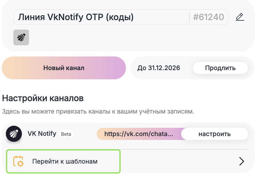 Шаг 1. В личном кабинете откройте раздел «Линии» выберите линию с каналом VK Notify. В настройках линии нажмите кнопку «Перейти к шаблонам».