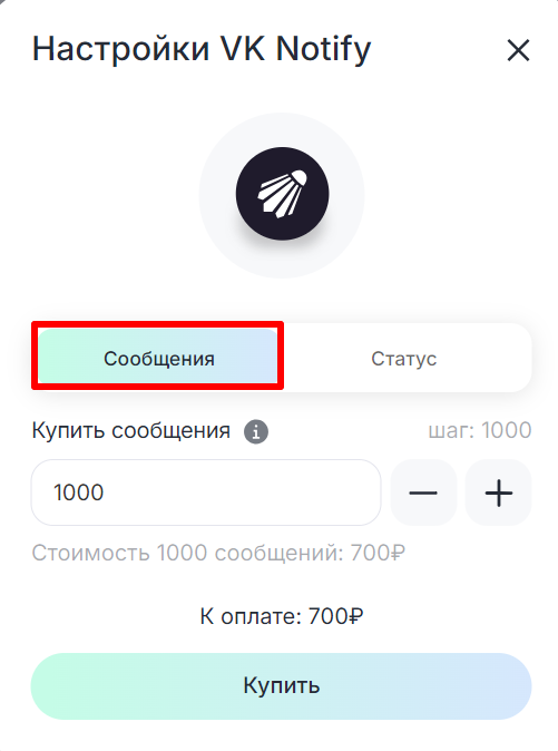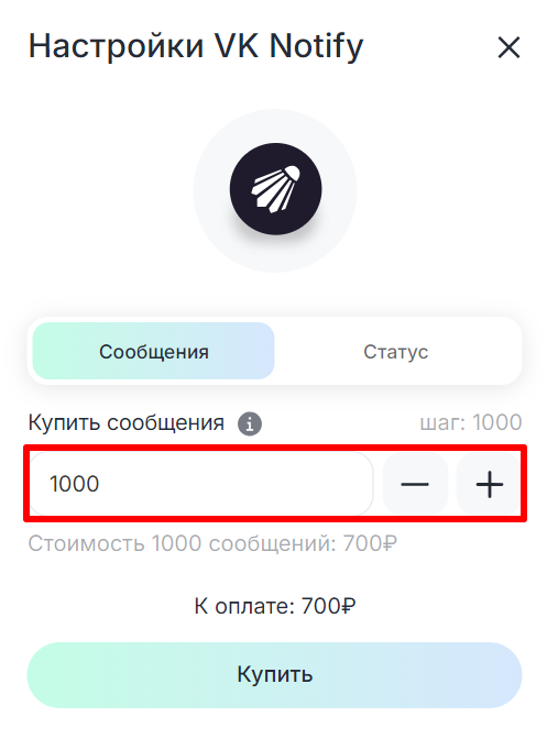 3. Выберите количество сообщений для покупки. Число должно быть кратно 1000.