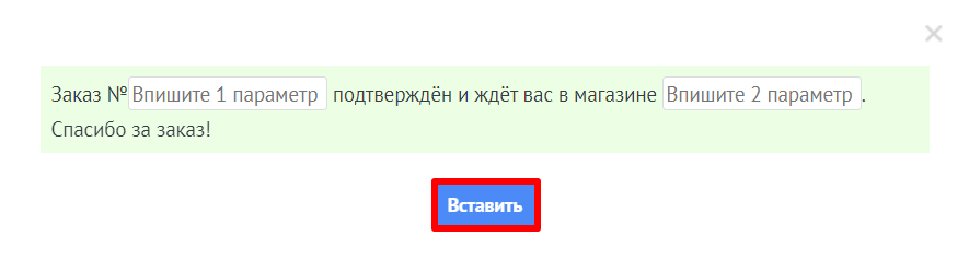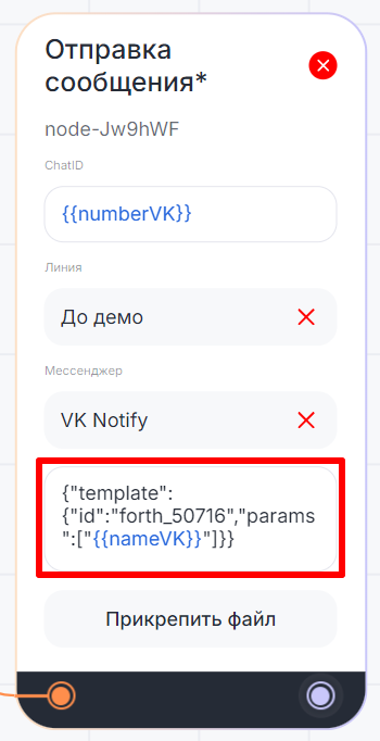 В окне отправки нажмите на значок листа →  выберите линию с подключённым VK Notify → затем шаблон →  Заполните переменные → нажмите «Вставить» →  затем «Отправить».
