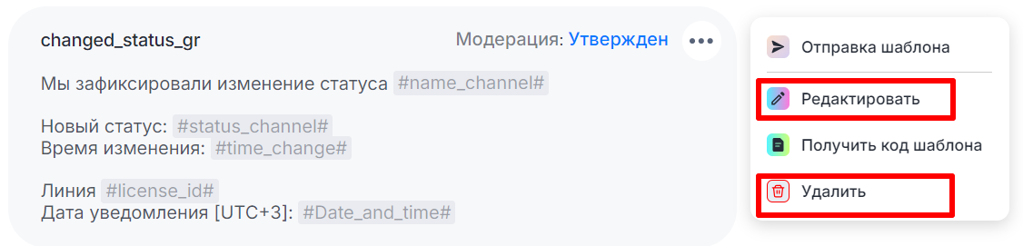 10. Чтобы редактировать или удалить шаблон, нажмите на три точки справа от шаблона в списке шаблонов.