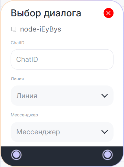 Блок «Выбор диалога» позволяет выбрать существующий чат, в котором будет продолжено выполнение сценария.