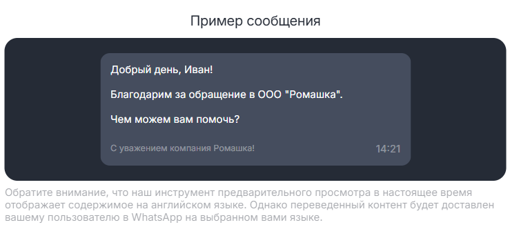 В WhatsApp Business API допускается использование пустых шаблонов — шаблонов без заранее заданного текста.