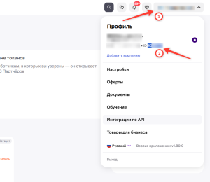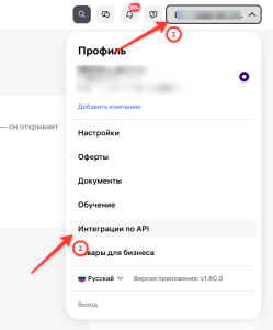1. Нажмите на ФИО в правом верхнем углу → в разделе профиль → перейдите в раздел «Интеграции по API».