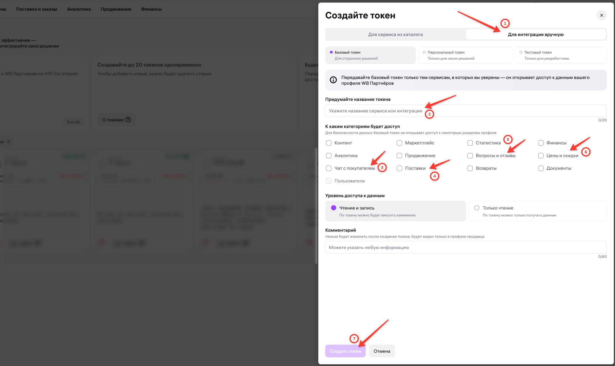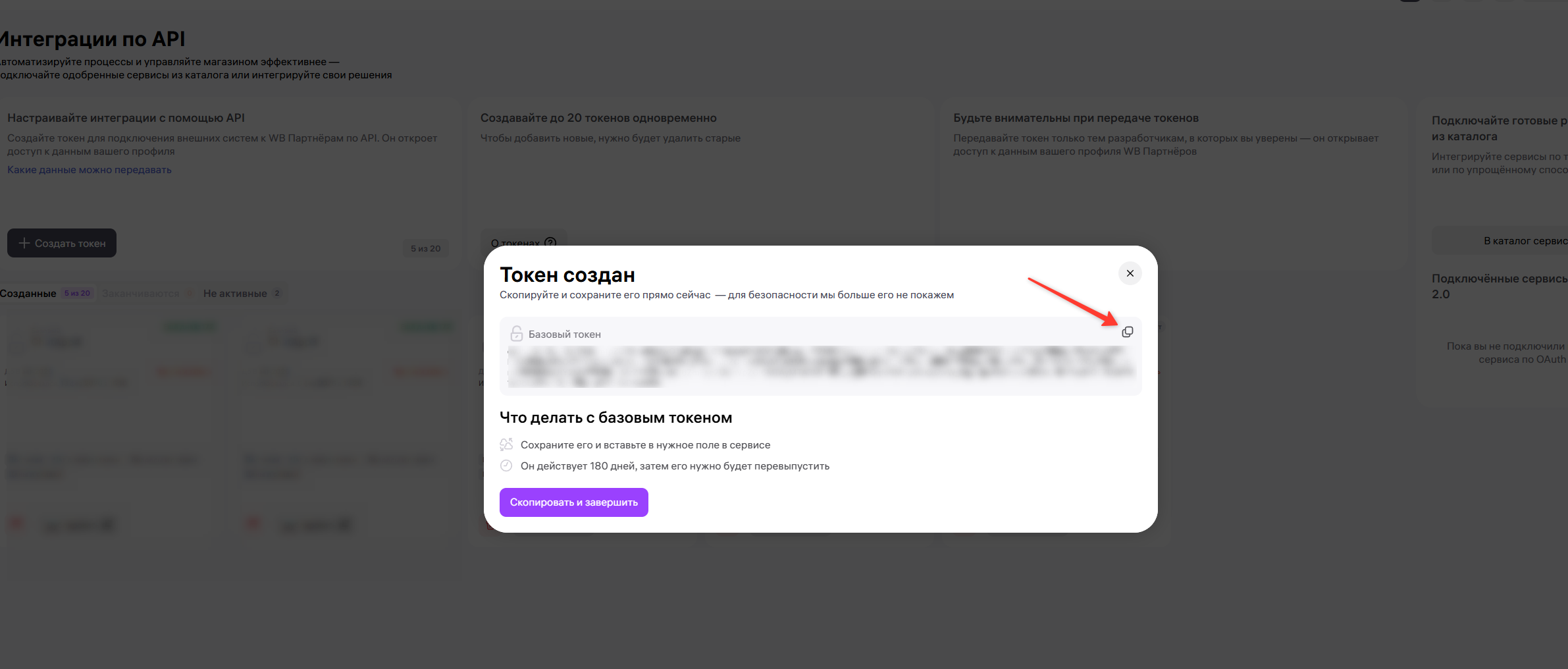 3. Скопируйте токен, он понадобится при подключения Wildberries в ChatApp