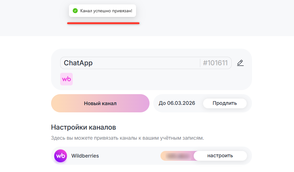 Шаг 3. После того как нажали на  «Далее» у вас появится уведомление об успешной привязки аккаунта Wildberries